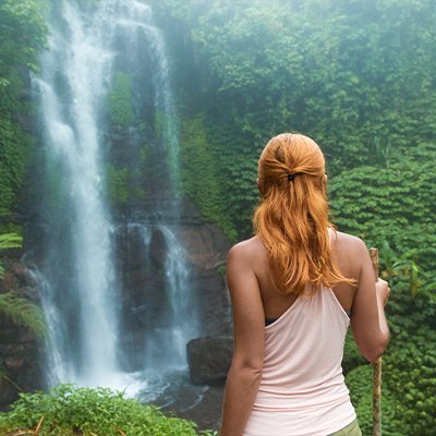Hike through pine forests to the island’s tallest waterfall, where cool mist and roaring waters await.
